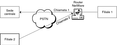 Each permanent outbound call configuration identifies a specific NetWare Link/PPP interface that is used to place the call to a remote system. However, when supporting on-demand connections, you might want to have a group of interfaces that can be shared between outbound connections. If each interface in the group provides the same capabilities, any available interface can be used to establish an on-demand outbound connection to a remote system. Furthermore, if all the interfaces are attached to switched circuits that represent the same telephone number, inbound calls placed to that telephone number can be accepted over any available interface in the interface group. This is similar to a multiple-line business telephone. To place an outbound call, you select any available line. Multiple inbound calls placed to the main office number are directed to any available line.
