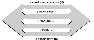 Collectively, ISDN is a set of digital transmission protocols defined by the ITU. ISDN provides both voice and data services over two types of lines: a Basic Rate Interface (BRI) and a Primary Rate Interface (PRI). Each type of line consists of a number of 64-Kbps bearer channels (or B channels) and one 16-Kbps or 64-Kbps delta channel (or D channel). B channels are clear-channel connections that can be used for voice and data communication. The D channel is used for signaling and X.25 packet networking.