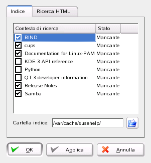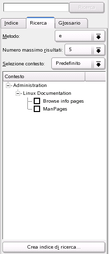 Se in precedenza non è stato generato un indice di ricerca, quando si fa clic sulla scheda Cerca o si digita una stringa da ricercare e si seleziona Cerca viene automaticamente richiesto di generarne uno. Nella finestra di dialogo per la generazione dell'indice di ricerca (Figura 9 di seguito), selezionare le caselle di controllo per determinare le origini delle informazioni da indicizzare. L'indice viene generato quando si chiude la finestra di dialogo facendo clic su OK.