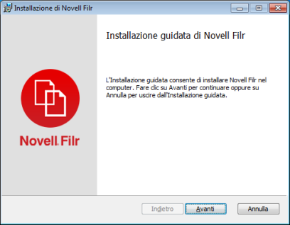 Al termine del download, aprire il file NovellFilrSetup-x86.exe o NovellFilrSetup-x64.exe, a seconda del sistema operativo (a 32 o 64 bit).