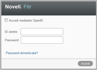 Il pulsante Password dimenticata? è disponibile solo per gli utenti esterni, cioè quelli invitati al sito Filr tramite un'e-mail di invito. In caso di login al sito Filr della propria azienda, è molto probabile che l'utente sia un utente interno e non possa modificare la password mediante questa funzione.