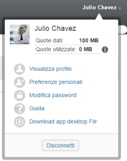 Fare clic sul collegamento del proprio nome nell'angolo in alto a destra di una pagina Filr qualsiasi.