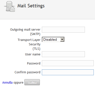 Specificare i dettagli per la configurazione del server di posta, quindi fare clic su .