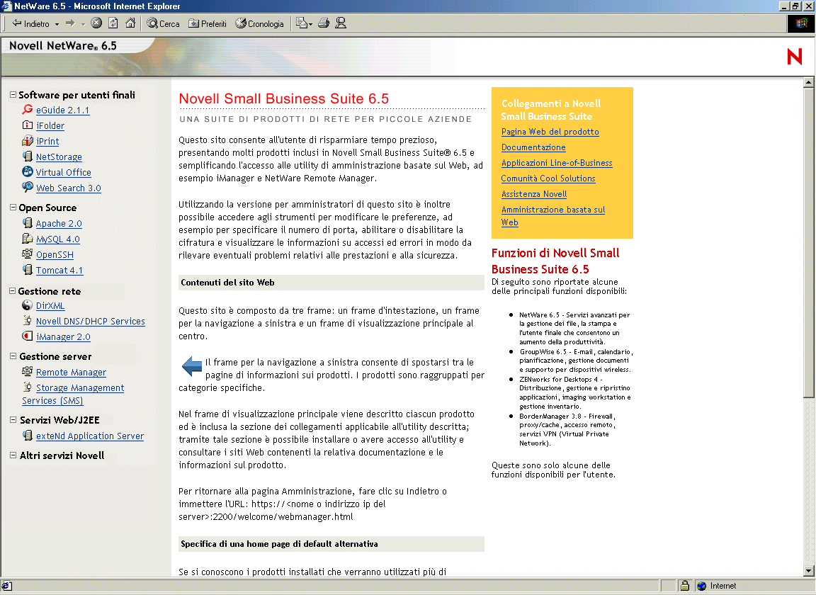Novell® GroupWise®, BorderManager® e ZENworks® non sono completamente integrati con il sito Web introduttivo.