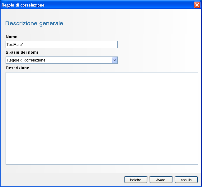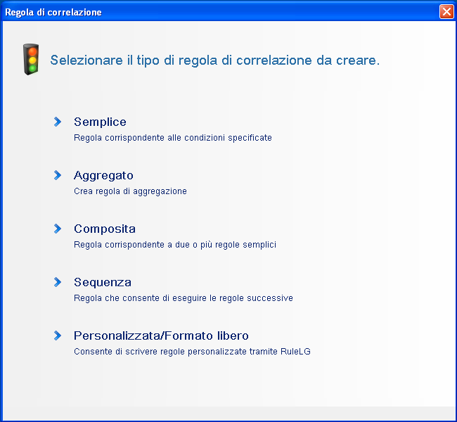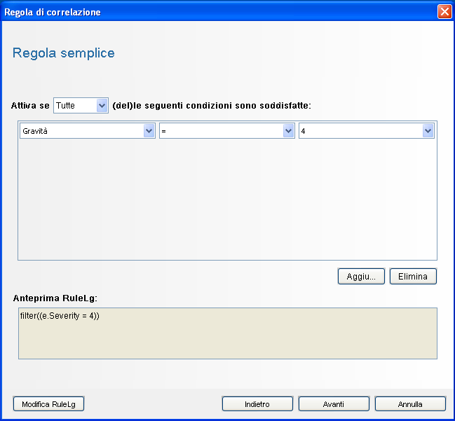 Fare clic su . Viene visualizzata la procedura guidata delle regole di correlazione