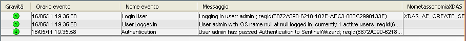 Ad esempio, aprire una finestra di login di Sentinel Control Center, quindi specificare credenziali utente errate per generare un evento simile.