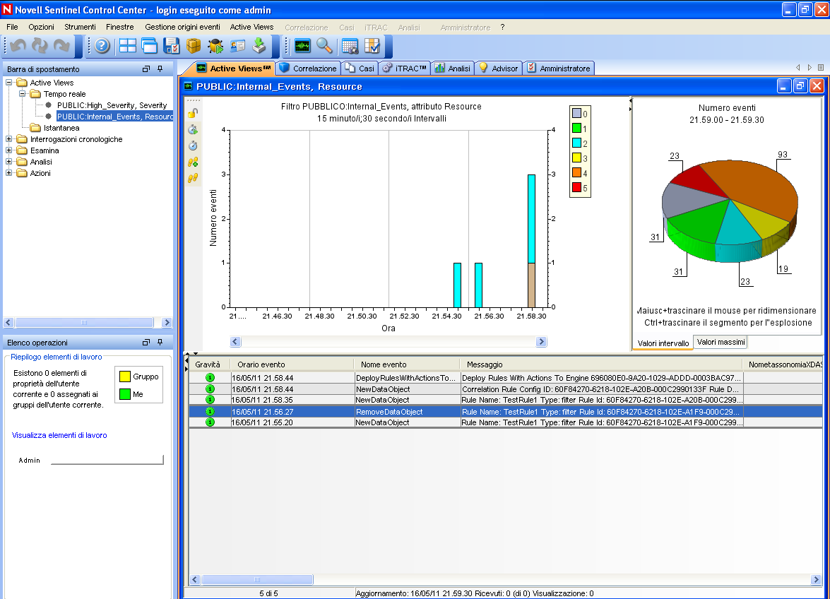 Si apre Sentinel Control Center in cui è possibile visualizzare la scheda con gli eventi filtrati in base ai filtri pubblici e .