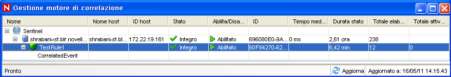In Motore di correlazione è possibile visualizzare l'avvenuta distribuzione e abilitazione della regola.