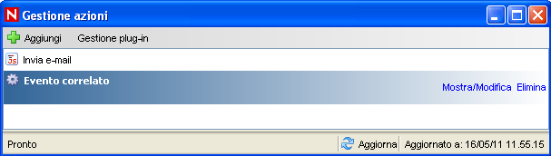 Selezionare per visualizzare la finestra Gestione azioni.
