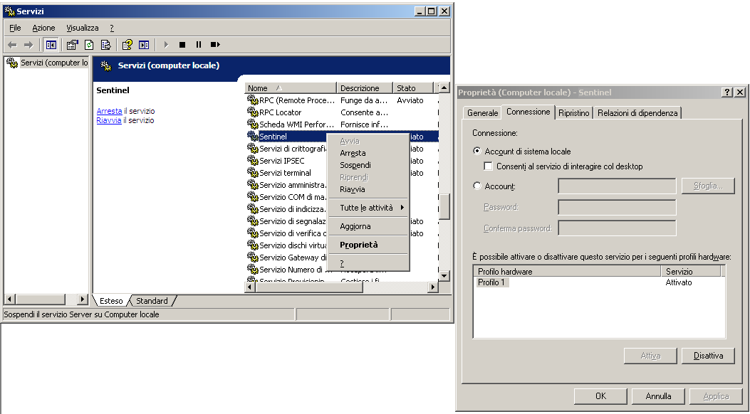 Fare clic con il pulsante destro del mouse su Sentinel e selezionare .
