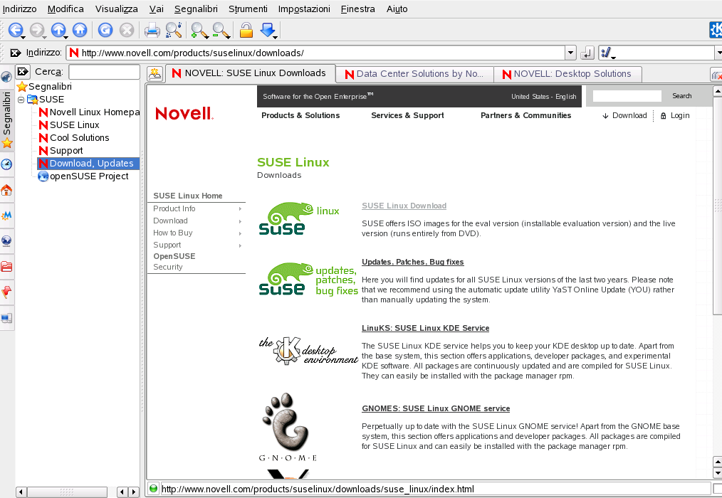 Per utilizzare Konqueror come browser Web, è sufficiente digitare un URL nella barra degli indirizzi. Come Firefox*, Konqueror offre la navigazione a schede. Ciò significa che è possibile caricare una pagina nello sfondo durante la lettura di un'altra pagina. Per aprire una scheda vuota in Konqueror, premere Ctrl+Shift+N e digitare un nuovo URL. In alternativa, fare clic con il pulsante destro del mouse su un collegamento nel sito Web visualizzato e selezionare . Fare clic con il pulsante destro del mouse sulla scheda per accedere alle altre opzioni corrispondenti come il nuovo caricamento, la duplicazione o la chiusura della scheda.