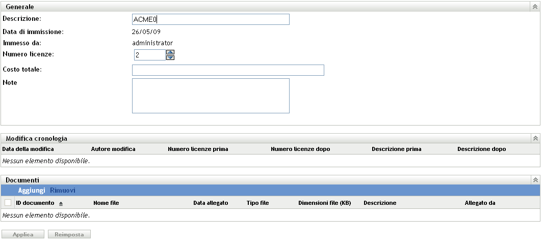 I record riepilogo acquisti consentono di immettere manualmente il numero di licenze che verranno utilizzate a scopo di calcolo.