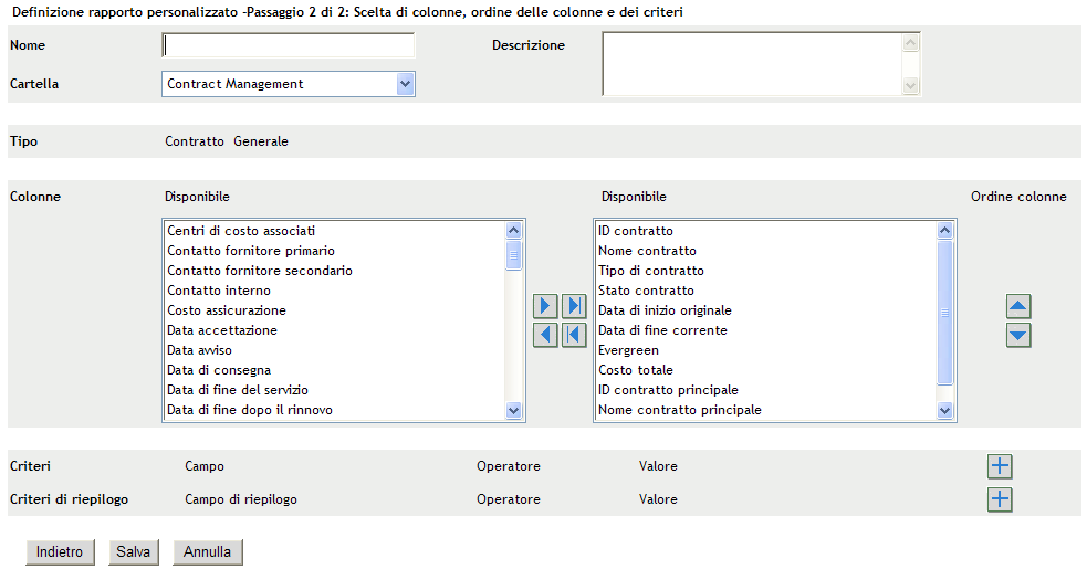 Per informazioni su come creare direttamente rapporti personalizzati, vedere Sezione 8.5.3, Creazione di un rapporto personalizzato.