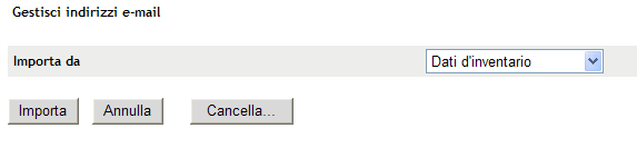 Se si sceglie , vengono importati gli indirizzi e-mail trovati in una scansione dell'inventario.