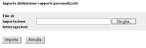 Se sono stati definiti rapporti in ZENworks Asset Management 7.5, è possibile importarli nel Centro di controllo ZENworks. È inoltre possibile reimportare rapporti che sono stati esportati dal Centro di controllo ZENworks. È necessario specificare un formato XML predefinito per l'importazione.