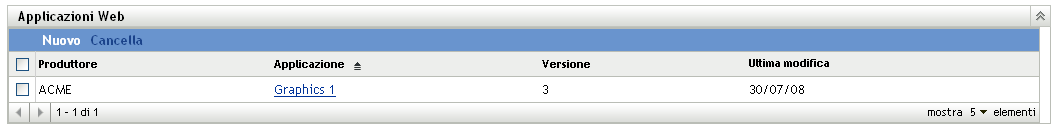ZENworks Asset Management consente inoltre di monitorare l'utilizzo delle applicazioni Web. È necessario definire prima le applicazioni Web; successivamente, è possibile utilizzare i rapporti nella cartella Applicazione Web alla pagina Utilizzo software per controllare l'utilizzo. Nel riquadro Applicazioni Web vengono visualizzate le seguenti informazioni: