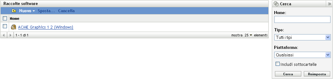 3. Nel riquadro Raccolte software, selezionare le raccolte che si desidera cancellare.