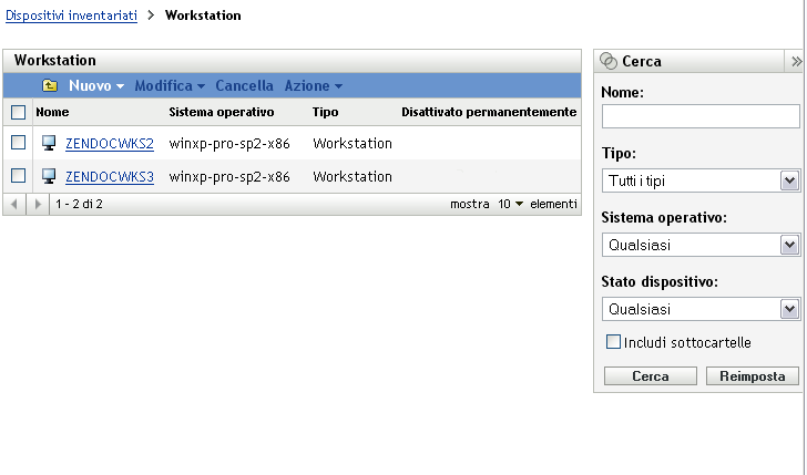 Figura 6-2 Pagina Dispositivi inventariati > cartella Workstation