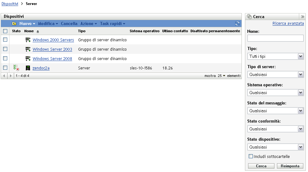 Figura 6-1 Pagina Dispositivi gestiti > cartella Server