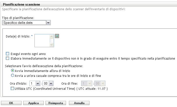 1. Selezionare Specifico della data nel campo Tipo di pianificazione.