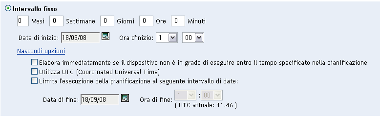 1. Selezionare Nessuna pianificazione nel campo Tipo di pianificazione.