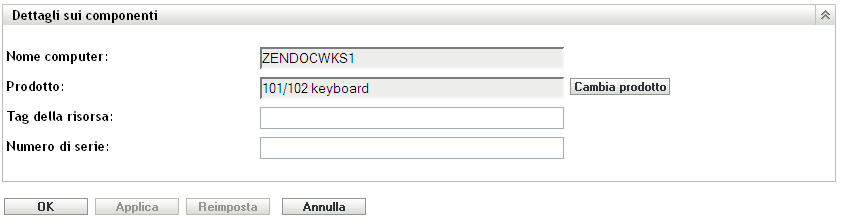 È possibile aggiungere i campi definiti dall'amministratore nel pannello Dettagli componente per visualizzare ulteriori informazioni sul componente. Ad esempio, è possibile aggiungere un campo denominato con le opzioni o per visualizzare lo stato di funzionamento del prodotto. Per ulteriori informazioni sulla creazione di campi definiti dall'amministratore, vedere Sezione 7.0, Utilizzo di campi definiti dall'amministratore.