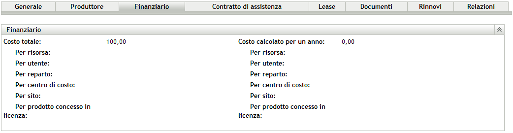 Nella scheda vengono visualizzati i costi associati al contratto. Queste informazioni vengono calcolate a partire dai dati contenuti nel contratto.
