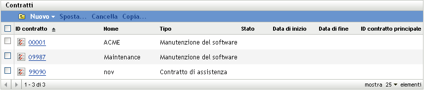 Fare clic sul contratto al quale si desidera aggiungere un documento.