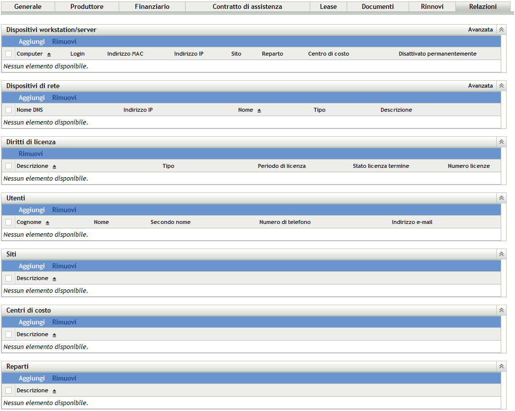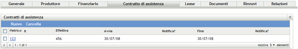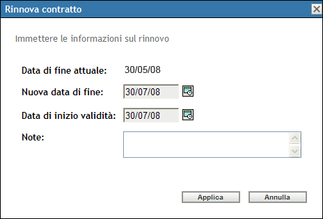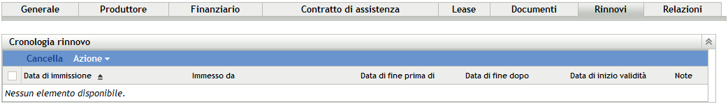 Nella scheda viene visualizzata la cronologia del rinnovo del contratto ed è possibile aggiungere e cancellare i record di rinnovo.