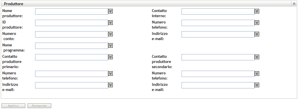 Centri di costo: Per aggiungere un centro di costo, fare clic su , selezionare il centro di costo, quindi fare clic su . Cancellare il centro di costo selezionandolo e facendo clic su .