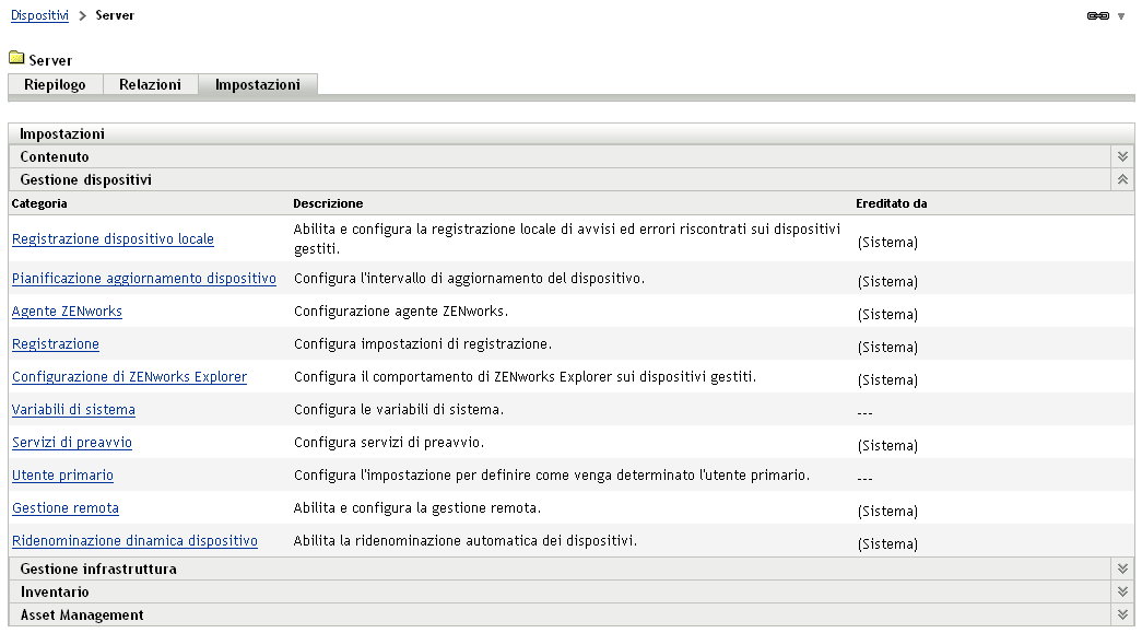 Nel Centro di controllo ZENworks, fare Clic sulla scheda .
