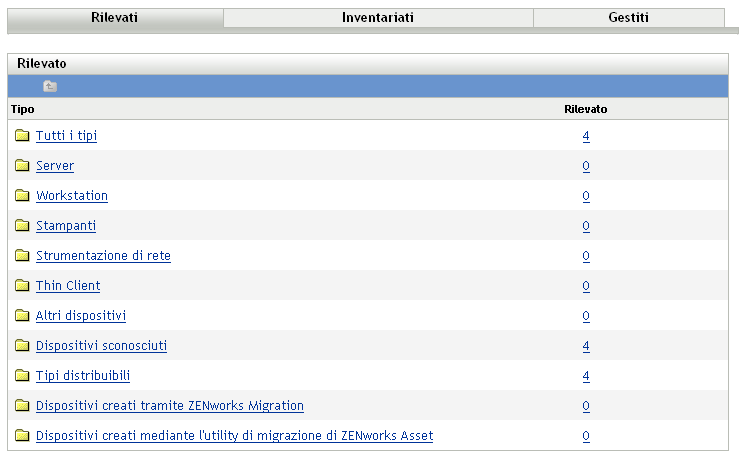 Figura 5-1 Riquadro Rilevati (scheda Dispositivi > pagina Rilevati)