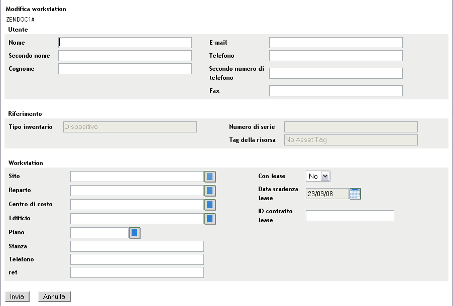 Riferimento: tipo di inventario, numero di serie e tag della risorsa. Non è possibile modificare questi valori.