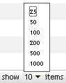 Questa sezione comprende anche il menu a discesa che consente di specificare quanti elementi visualizzare nella sezione, come mostra la seguente figura: