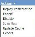 Questa sezione include il menu , che consente di eseguire una qualsiasi delle cinque azioni correlate alle patch: , , , , . Per ulteriori informazioni su queste azioni, vedere Sezione 7.2.6, Voci del menu Azione.