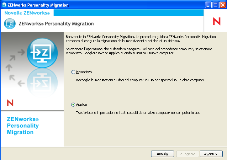 Usare uno dei seguenti metodi per avviare ZENworks Personality Migration sul sistema, come descritto di seguito: