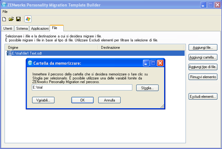 Fare clic su per selezionare una variabile associata all'ubicazione di destinazione. Ad esempio per migrare un file denominato file1 nella directory favorites, fare clic sulla variabile e aggiungere \file1 in fondo alla variabile.