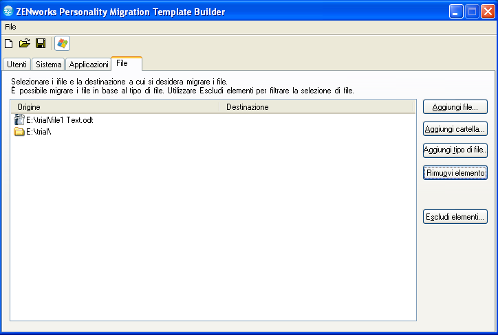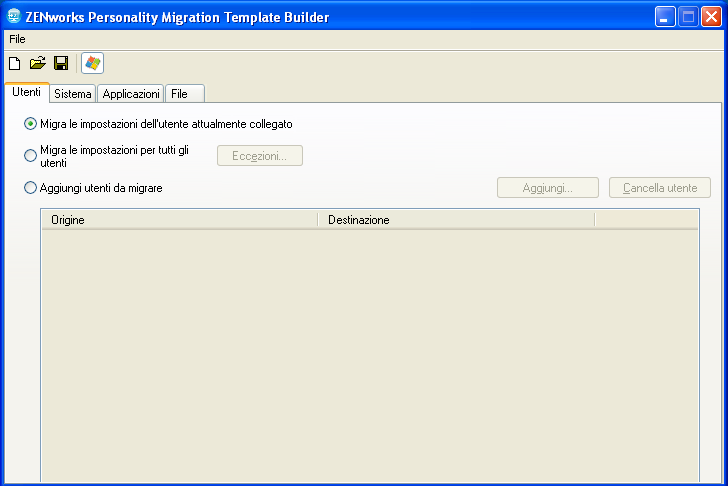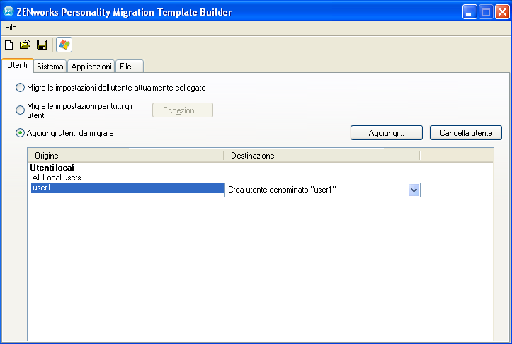 Un modello è un file XML che può essere letto e modificato con un editor qualsiasi. Tuttavia, il Generatore modelli di ZENworks Personality Migration offre un metodo pratico per creare modelli personalizzati per le migrazioni e per effettuare migrazioni standardizzate e uniformi a livello aziendale. Questi modelli possono infatti essere creati direttamente tramite il Generatore modelli.