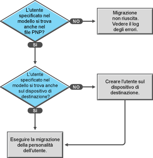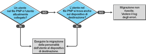Scenario 1: selezione dell'opzione modello Migra le impostazioni per l'utente che ha eseguito il login
