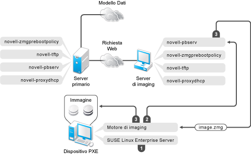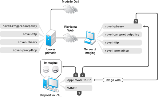 Figura 2-2 Processo dei servizi di preavvio per l'imaging di ZENworks sul satellite di imaging
