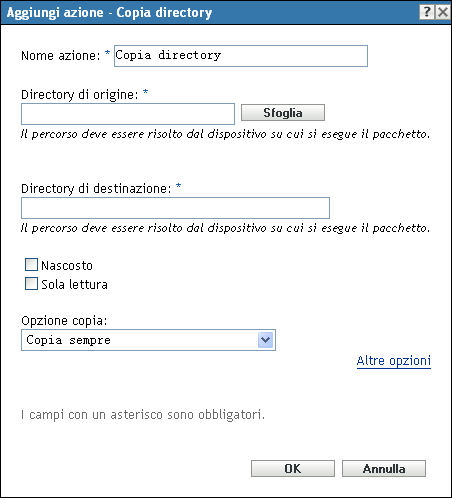 Figura E-2 Finestra di dialogo Azione - Copia directory