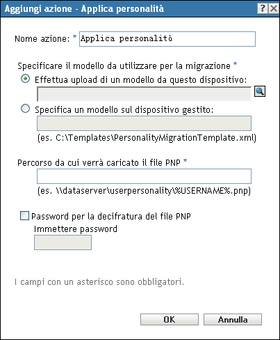 Figura E-1 Finestra di dialogo Azione - Applica personalità