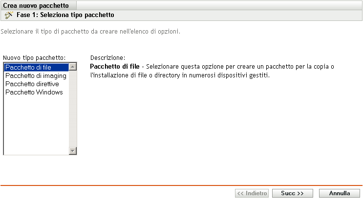 Nell'elenco , fare clic su , quindi su per visualizzare la pagina Seleziona tipo pacchetto.