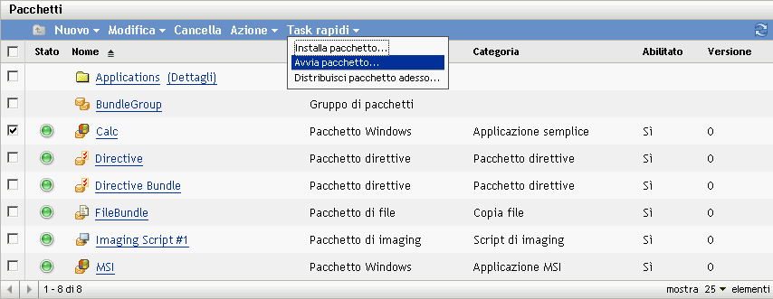 Nell'elenco selezionare la casella di controllo vicino al pacchetto o ai pacchetti.