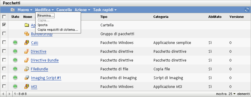 Selezionare o , quindi fare clic su per selezionare i pacchetti o le norme in cui copiare i requisiti di sistema del pacchetto selezionato.