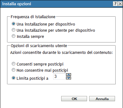 Limita posticipi a: consente di specificare il numero di volte in cui l'utente può posticipare l'installazione.