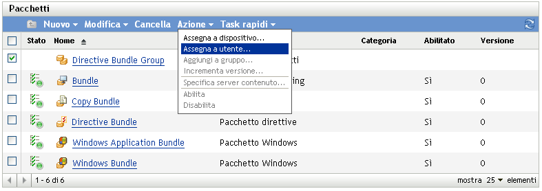 Nell'elenco selezionare la casella di controllo vicino al gruppo o ai gruppi di pacchetti.