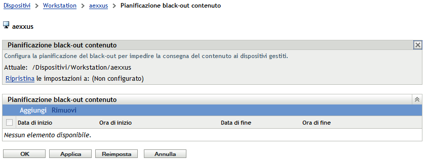 Se non si desidera che i dispositivi gestiti scarichino il contenuto in particolari ore, è possibile creare una pianificazione di black-out del contenuto. È possibile definire le pianificazione ai seguenti livelli: