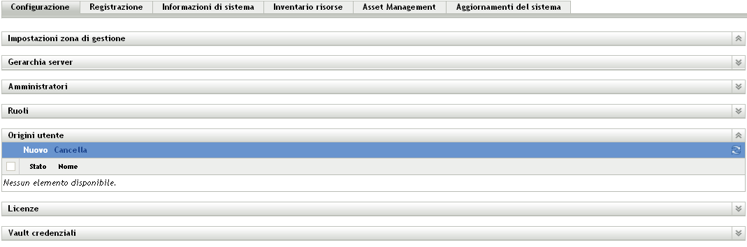 È possibile aggiungere MiaSocietà/EMEA come container utente, in modo che tutti i container ubicati sotto EMEA siano visibili nel Centro di controllo ZENworks, compresi i container Server e Servizi. Solo gli utenti e i gruppi contenuti nei container EMEA sono visibili (non i server e i servizi), ma la struttura è comunque esposta.