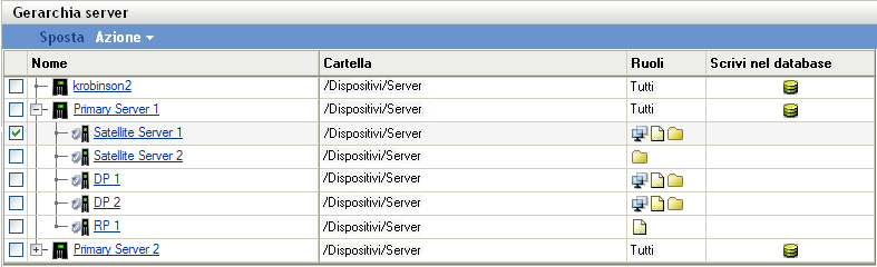 Se si è abilitato uno o più ruoli, l'icona del ruolo del satellite viene aggiunta nel pannello Gerarchia server all'interno della colonna .